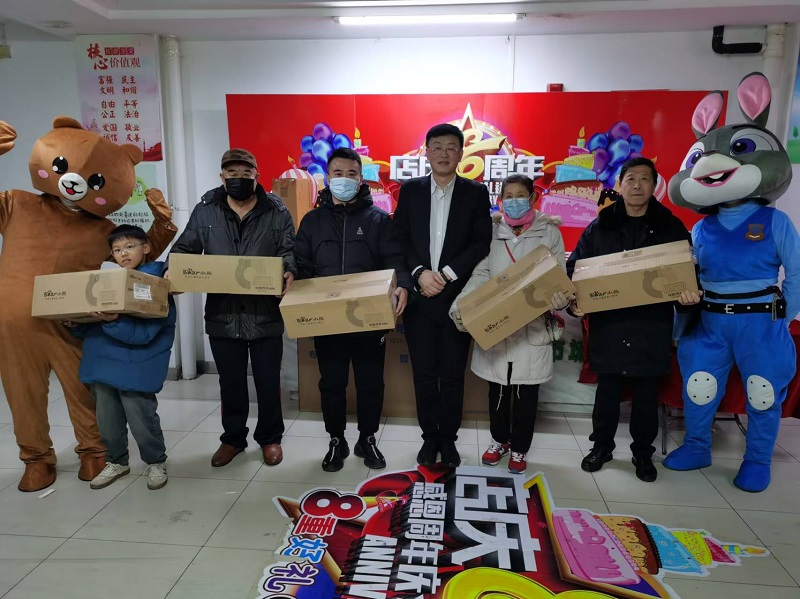 12月15日下午三點,是此次八周年慶的最后一個高潮,開獎現(xiàn)場人山人海,將本次店慶活動的氣氛推到了最高潮。本次大抽獎隨著店長孫國以現(xiàn)場抽取幸運號碼的形式,最終由16位幸運的顧客獲得了終極幸運大獎。開獎結束后,農(nóng)商公司總經(jīng)理孫晶為中獎顧客頒獎并合影留念。