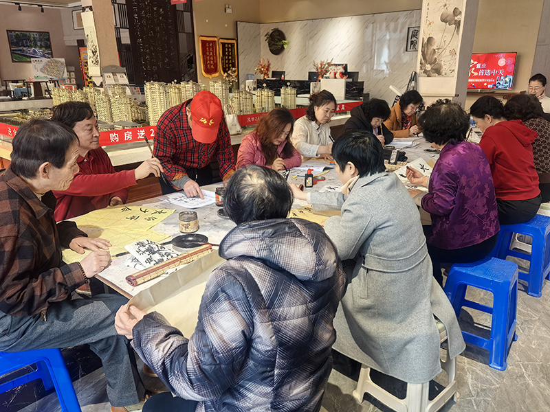 活動現場的沉浸式體驗更顯巧思,來賓在專業(yè)指導下完成"家""和""園"等主題創(chuàng)作,筆墨間勾勒出對未來生活的期待。特別設置的"書法盲盒"活動,將戶型圖、園林效果圖以卷軸形式呈現,每幅作品展開都是驚喜。這種參與式營銷讓潛在客戶在文化共鳴中建立起情感認同。