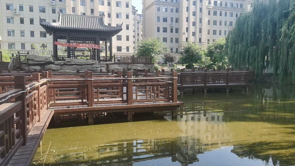 隨著氣溫逐漸升高,小區(qū)景觀池塘出現(xiàn)了水質(zhì)渾濁、水草瘋長、落葉雜物堆積等問題,不僅影響美觀,還可能滋生蚊蟲,對居民生活造成一定影響。針對這一情況,物業(yè)團(tuán)隊提前制定方案,工作人員身著防水服,攜帶打撈網(wǎng)、水泵、高壓水槍等工具,對池塘內(nèi)的枯枝落葉、塑料袋、藻類植物等進(jìn)行徹底打撈,并使用專業(yè)設(shè)備抽取污水、清理淤泥。同時,對池塘周邊的護(hù)欄、步道進(jìn)行了檢修和清潔,同步投放生態(tài)凈化藥劑,改善水質(zhì),為后續(xù)養(yǎng)護(hù)奠定基礎(chǔ)。