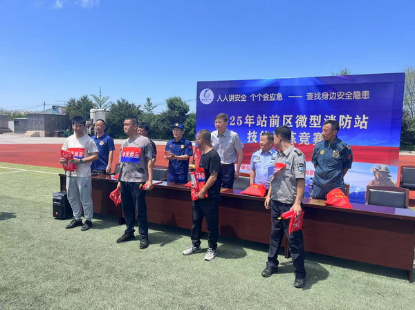 競賽緊扣實戰(zhàn)需求,設(shè)置水槍水帶連接賽、傷員擔(dān)架救援賽、防護(hù)裝備穿戴賽、滅火器識別選擇賽、消防知識挑戰(zhàn)賽等五個比賽項目,全面檢驗選手的體能、技能和團(tuán)隊協(xié)作能力,充分展現(xiàn)現(xiàn)代化救援技術(shù)。中天物業(yè)最終獲得由站前區(qū)消防救援大隊頒發(fā)的二等獎“應(yīng)急處置精銳團(tuán)隊”牌匾。