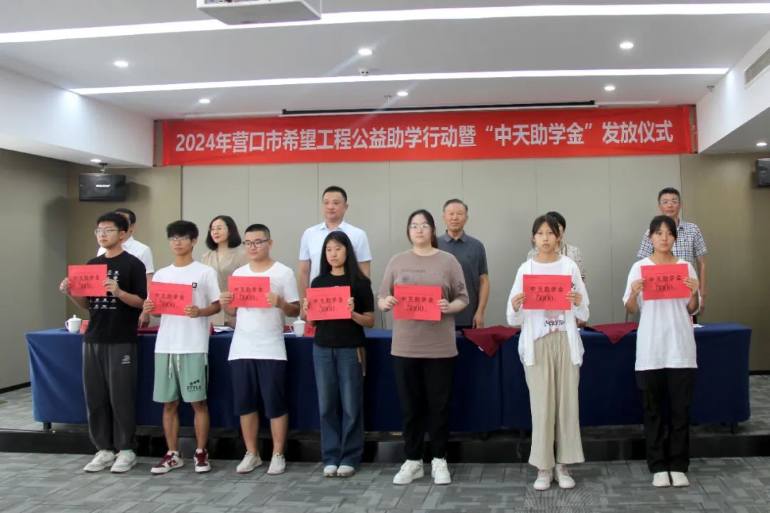 8月9日下午,2024年營口市希望工程公益助學(xué)活動暨“中天助學(xué)金”發(fā)放儀式在中天集團(tuán)總部會議室舉行。營口市團(tuán)市委副書記(主持工作)劉慶男,中天企業(yè)集團(tuán)董事長于寶權(quán)、總裁于洪波,營口市團(tuán)市委副書記梁嫚,營口市招生考試委員會辦公室主任崔玉琪,營口市慈善總會副會長黃渤以及獲得資助的32名學(xué)生,出席了本次發(fā)放儀式。