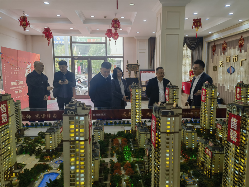 遼陽城市公司總經理孫海峰、銷售經理孫冬梅、綜合部副經理張禹成等領導參加了此次接待工作。首先,各位領導一行參觀了項目沙盤,在銷售人員的詳細介紹下,充分了解了中天集團在遼陽開發(fā)的各個樓盤項目,以及取得的較好業(yè)績,各級領導對中天項目的發(fā)展給予了充分的認可,并開展了座談會。會上,孫總表示對我們稅務局領導為企業(yè)護航表示感謝,同時介紹了中天集團的發(fā)展歷程,我們是以房地產為主營,物業(yè)、酒店、商業(yè)、農貿公司為附屬的企業(yè),集團產業(yè)遍布遼寧省內6個城市。2010年開疆擴土進入遼陽市場,建設的第一個項目是中天壹品,先后共建設中天城市廣場1-5期、中天御品、中天河畔尊邸、中天書香庭院五個項目,共開發(fā)建設面積802,748.34平方米。同時,孫總對公司未來在遼陽的項目規(guī)劃做出了詳細的介紹。稅務局各位領導聽取孫總的匯報后對中天開發(fā)的各個項目無論從納稅情況還是施工設計上都給予了極高的肯定和認可,并對中天集團在遼陽發(fā)展未來可期。