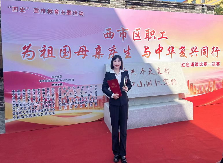 此次比賽采取誦讀紅色經(jīng)典的形式,歌頌偉大祖國,展示西市區(qū)機(jī)關(guān)干部和職工在黨的領(lǐng)導(dǎo)下跨越趕超的精神,以及在全面建設(shè)社會(huì)主義現(xiàn)代化國家新征程上闊步前行、奮力譜寫中國現(xiàn)代化精彩篇章的堅(jiān)定決心。經(jīng)過前期預(yù)賽的激烈角逐,共有16個(gè)作品晉級決賽。由中天集團(tuán)選送的作品——農(nóng)商公司綜合管理部經(jīng)理盧世蓮誦讀的《黨的贊歌》,在眾多作品中脫穎而出,盧經(jīng)理的誦讀展示了中天集團(tuán)全體干部職工擔(dān)當(dāng)實(shí)干、拼搏向上的精神風(fēng)貌,獲得評委的一致好評,獲得三等獎(jiǎng)。