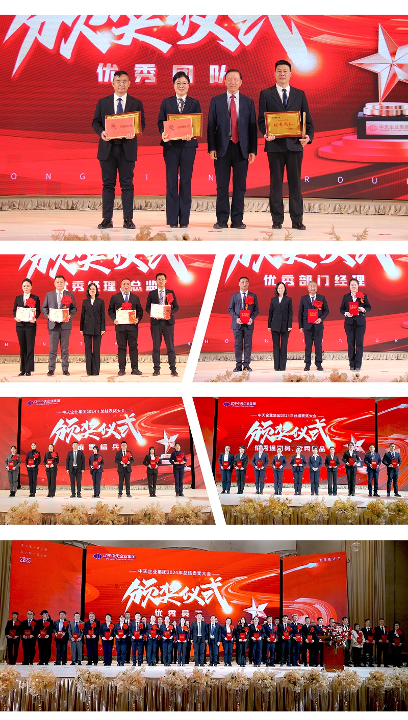 王曉青總裁助理宣讀了集團2024年度表獎決定,錦州城市公司、農(nóng)貿(mào)管理公司、集團總部財務(wù)管理中心三個單位獲得優(yōu)秀團隊;大連城市公司總經(jīng)理許棕雯、酒店管理公司總經(jīng)理李敏獲得優(yōu)秀總經(jīng)理;集團總部成本招采管理中心總監(jiān)譚學鍇、集團總部項目管理中心總設(shè)計師盧詩揚獲得優(yōu)秀總監(jiān);撫順城市公司副總經(jīng)理李巖、集團總部人力資源部經(jīng)理王慧博、集團總部工程裝修部經(jīng)理蘆偉三人獲得優(yōu)秀部門經(jīng)理;總部財務(wù)管理部出納主管姚蘭等47人獲得優(yōu)秀員工;錦州城市公司書香庭院項目銷售主管郭羽淑等7人獲得銷售標兵。會上,舉行了隆重的表獎儀式。同時還表獎了《中天之窗》和《中天視角》優(yōu)秀通訊員和優(yōu)秀作品的獲獎人員。